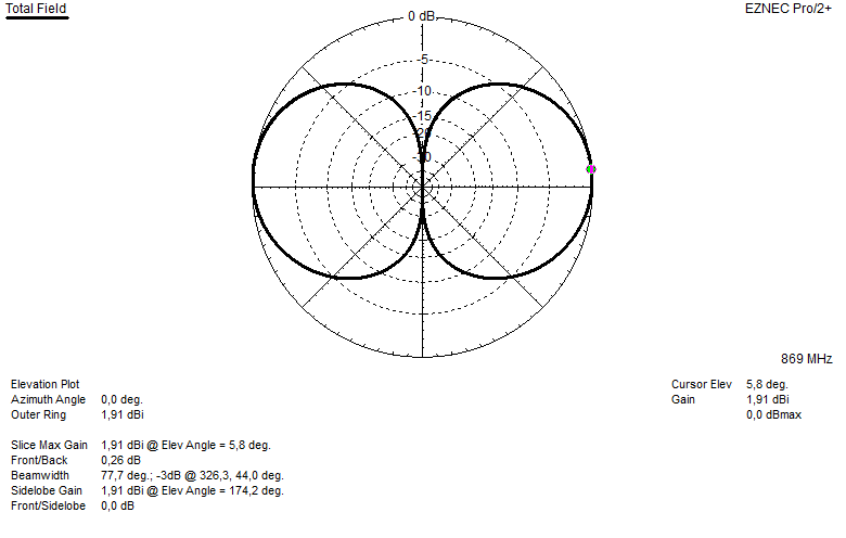 Vogliamo cercare di arrivare il più lontano possibile sul piano dell’orizzonte? Ecco un diagramma di irradiazione che *dovrebbe* fare al caso nostro, il classico dipolo ½ lambda
