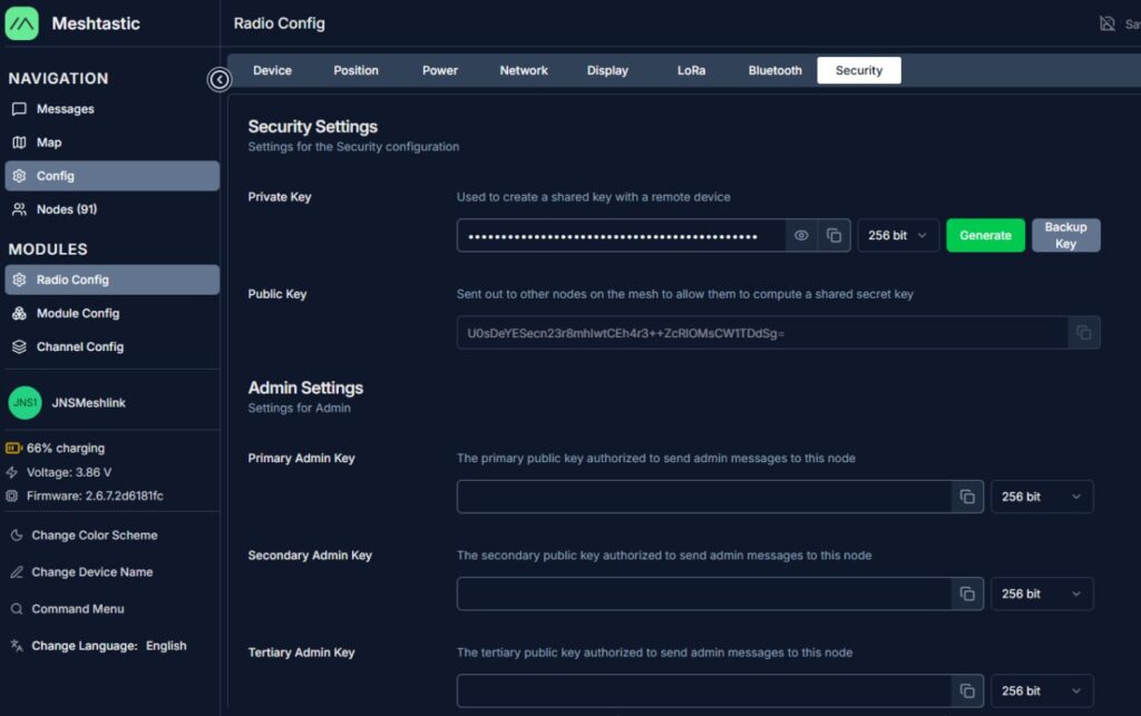 Come verifica è possibile confrontare la chiave pubblica appena generata dal firmware con quella esportata nel file di testo meshtastic_keys.