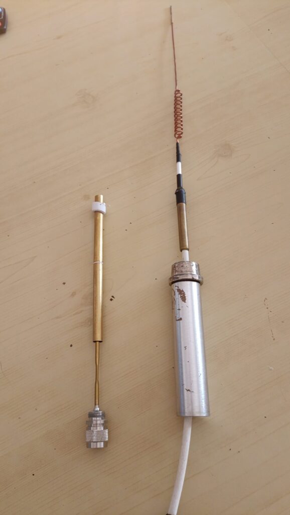 La prima è un’antenna commerciale, il classico sleeve dipole montato su connettore N e con radome in fibra di vetro. La seconda è una collineare auto costruita, su base sleeve dipole con tratto di sfasamento a bobina. Su questa antenna ci sarebbero da aggiungere altri dettagli, magari farò una puntata dedicata.