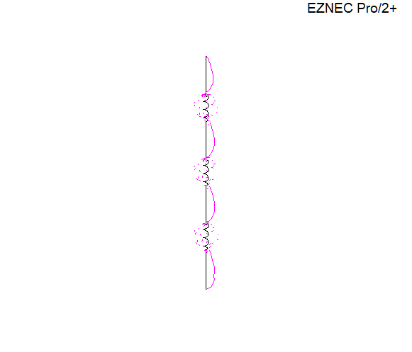 Cominciamo dallo schema teorico di due dipoli verticali collineari ove lo sfasamento è ottenuto con l’interposizione di un avvolgimento, una bobina insomma. Lo sfasamento deve essere di 180° precisi, è critico, è molto critico. Se lo sfasamento non sarà quello giusto il guadagno non sarà ottimale o, peggio, ci ritroveremo con un’antenna inutilizzabile.