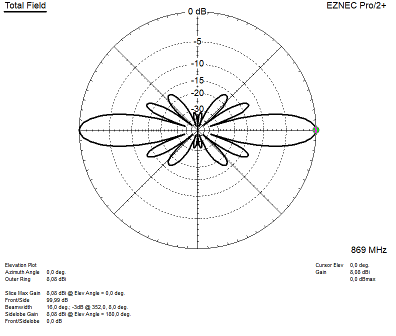Il risultato in teoria è molto buono ma … ci sono i suoi ma. Bisogna essere precisi nella misura delle bobine, bisogna essere certi che le bobine introducano uno sfasamento di 180°. Bisogna anche ottenere delle bobine che separino i dipoli almeno di qualche centimetro, diciamo fra 5cm e 8cm a 868 mhz, altrimenti il guadagno calerebbe troppo.