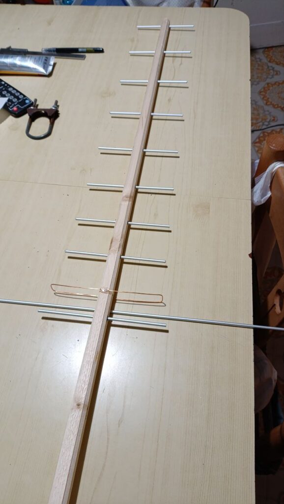 Come per ogni buon progetto, prima di tutto occorre definire l’hardware di cui disponiamo. Per questa antenna useremo una barra piena in alluminio da 4mm per gli elementi passivi e un filo di rame da 1mm per il radiatore. Per il boom andrà bene un quadrello di legno, da verniciare, oppure un tubo di plastica sufficientemente rigido. Come staffe di montaggio io uso materiale televisivo reperibile dovunque.